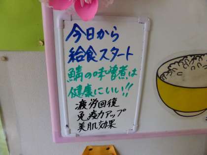 給食メニュー 公開日 2023/04/07 更新日 2023/04/07 日々の活動から 4月7日(金) 給食メニューです。 ごはん 牛乳 さばのみそ煮 コーン和え 鶏肉と大根のごますき煮でした。 鶏肉と大根のごますき煮には、ハート型の大根が入っていました。 まるで入学を祝福するようでした。 給食の関係者の皆様、今年度も温かくておいしい給食をお願いします。