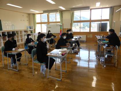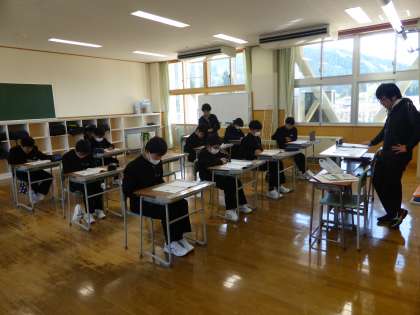 1限の授業の様子 公開日 2023/04/10 更新日 2023/04/10 日々の活動から 4月10日(月) 1年生は、学級活動で中学校での生活について話を聞いていました。 2年生は、保健体育で「運動やスポーツが心身や社会性におよぼす効果について」という内容の授業でした。 3年生は、社会で「大正文化」という内容の授業でした。