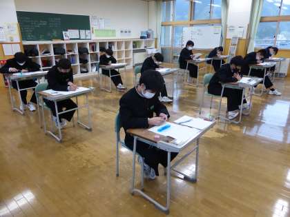 2限の授業の様子 公開日 2023/04/12 更新日 2023/04/12 日々の活動から 4月12日(水) 1年生は、英語の学力調査に取り組んでいました。 2年生は、数学の学力調査に取り組んでいました。 3年生は、数学の学力調査に取り組んでいました。