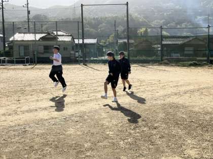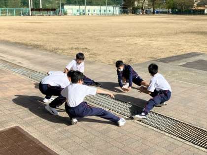 上級生が2、3人の新入生と一緒に準備体操から教えていました。