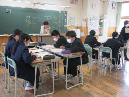 3限の授業の様子2 公開日 2023/04/17 更新日 2023/04/17 日々の活動から 4月17日(月) 2年生は、国語で「ぐうちゃんの特徴を挙げよう」という内容の授業でした。 3年生は、数学で「乗法公式1」という内容の授業でした。