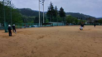 今日は外で、1年生が体験入部をしました。 2.3年生がやさしく教えています!