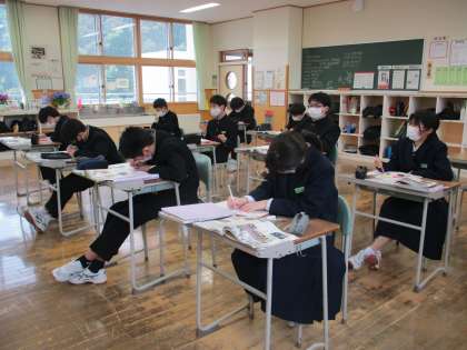 5限の授業の様子 公開日 2023/04/18 更新日 2023/04/18 日々の活動から 4月18日(火) 1年生は、数学で「符号のついた数」という内容の授業でした。 2年生は、社会で「日本の海と気候」という内容の授業でした。 3年生は、全国学力・学習状況調査の質問紙の記入をしていました。