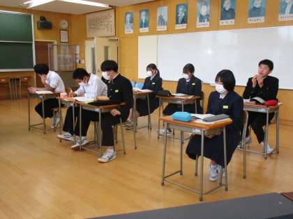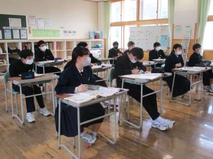 5限の授業の様子 公開日 2023/04/20 更新日 2023/04/20 日々の活動から 4月20日(木) 1年生は、理科で野外観察に行っていました。 2年生は、社会で「身分制のくらし」という内容の授業でした。 3年生は、音楽で『「花」を正しい音程・強弱で歌おう』という内容の授業でした。