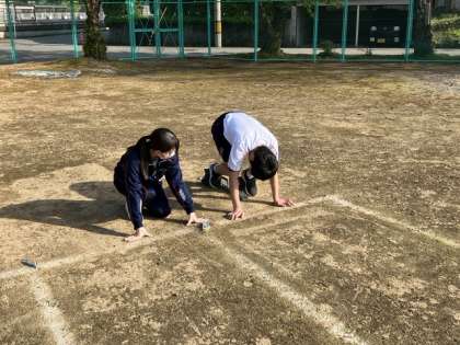 陸上競技部の活動の様子 公開日 2023/04/20 更新日 2023/04/20 日々の活動から 4月20日(木) 陸上競技部の活動の様子です。 今日は仮入部に新入生が3人来ました。 上級生と新入生がペアになって、100メートル走のスタート練習をしました。 その後で実際に100メートル走のタイムを計りました。 ある新入生の日誌には、「もっと練習して速くなりたいです。」と書いてありました。 これから少しずつがんばっていきましょう。