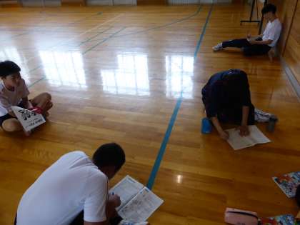 3年生は、保健体育でスポーツテストのハンドボール投げを終えて記録していました。