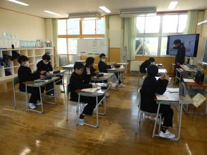2限の授業の様子 1 公開日 2023/04/27 更新日 2023/04/27 日々の活動から 4月27日(木) 1年生は、英語で英文を耳で聞いて正しいモノを選ぶということをしていました。 碧空級は、英語で数字を言う練習をしていました。