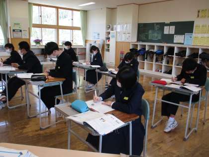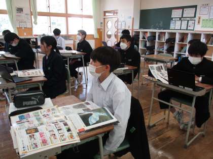6限の授業の様子 公開日 2023/04/27 更新日 2023/04/27 日々の活動から 4月27日(木) 1年生は、保健体育で50m走のタイムを計っていました。 2年生は、美術で「空想の世界へようこそ」という内容の授業でした。 3年生は、英語で「朝美とジョンの会話を読みとろう」という内容の授業でした。