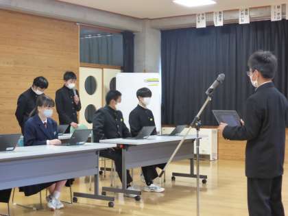 1限 生徒総会 3 公開日 2023/04/28 更新日 2023/04/28 日々の活動から 4月28日(金) 1年生もたくさん質問していました。 最後は、生徒会長の言葉で終了しました。 関係したみなさんお疲れ様でした。 今日の生徒総会の内容を有言実行してよりよい楡原中学校にしていきましょう。