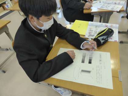 4月28日(金) 1年生は、美術で「鉛筆で描こう」という内容の授業でした。