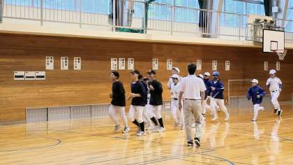 4/30 野球部は、城山中学校と合同練習を行いました。 あいにくの雨で、室内練習を中心に行いました!