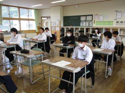 2年生は、「社会に学ぶ『14歳の挑戦』」のスローガンを決めていました。