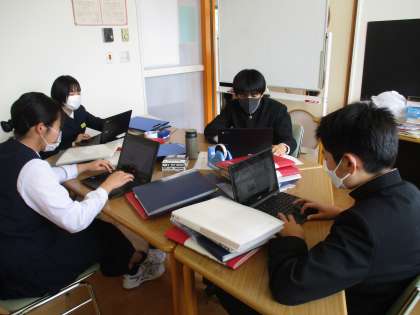放課後の活動 2 公開日 2023/05/01 更新日 2023/05/01 日々の活動から 5月1日(月) 生徒会執行部は「クラスでSDGs」の企画を考えていました。 環境実践部は、ポスターの刷新をしていました。 今年度から、実践部の活動を30分間行うことになったので、はやく終わった実践部員からボランティア活動をしていました。