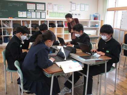 2年生は、国語で「『枕草子』第一段をまねて季節感を表す随筆を書こう」という内容の授業でした。