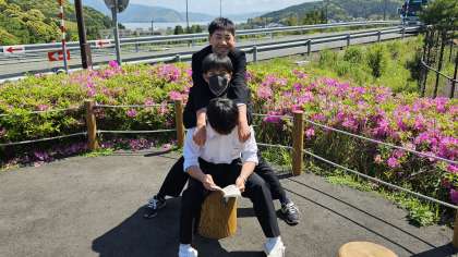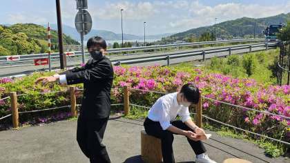 修学旅行1日目その4 公開日 2023/05/09 更新日 2023/05/09 日々の活動から 福井県の加斗パーキングエリアでは若狭湾の眺めがきれいでした! リアス海岸を背景に写真もとりました!快晴です! 京都府の舞鶴市まであと少しです。