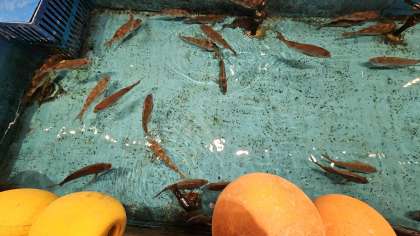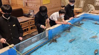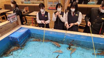 食事会場では、釣り体験ができるのでやりました! さて、釣れるかな?