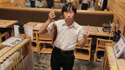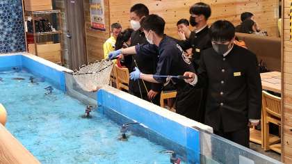 三匹釣れたので食事です! 店長さん、レクチャーありがとうございます。 いただきます!