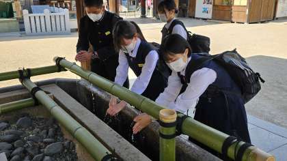 まずは、鳥居に一礼、清めます。
