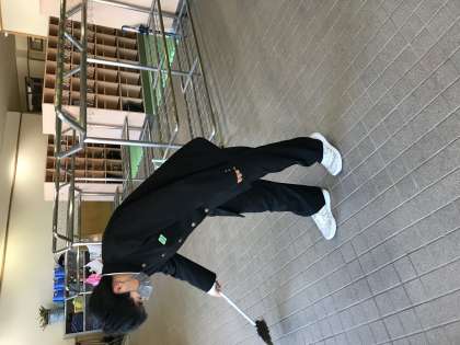 今日も晴天のもと、元気な挨拶をして登校しました。環境実践部は朝活動として玄関の清掃に取り組んでいます。今朝はボランティアとして参加してくれた生徒もいました。