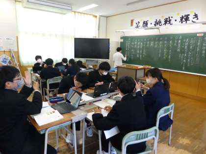 2限の授業の様子 公開日 2023/05/12 更新日 2023/05/12 日々の活動から 5月12日(金) 1年生は、美術で「鉛筆で描こう」という内容の授業でした。 2年生は、国語で「言葉の世界を広げよう」という内容の授業でした。 3年生は、楡の木タイムで修学旅行のまとめ新聞を作っていました。