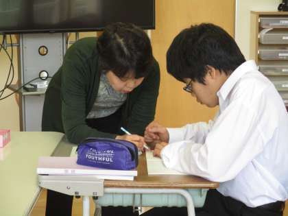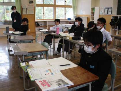 1年生は、英語で「メグと海斗の会話を通して、質問する文の使い方を学ぼう」という内容の授業でした。