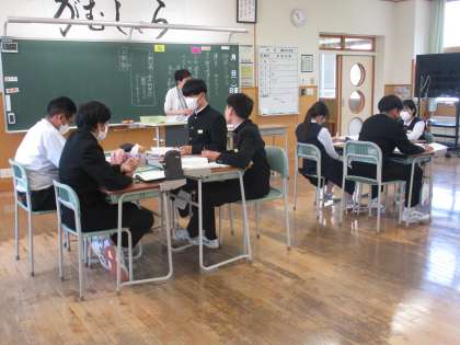 3年生は、国語で「小説の全体を捉えよう」という内容の授業でした。