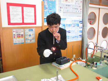 2年生は、理科で鉄と硫黄から硫化鉄を作る実験をしていました。
