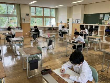 1年生は、学級活動で数学の中間考査対策問題を解いていました。