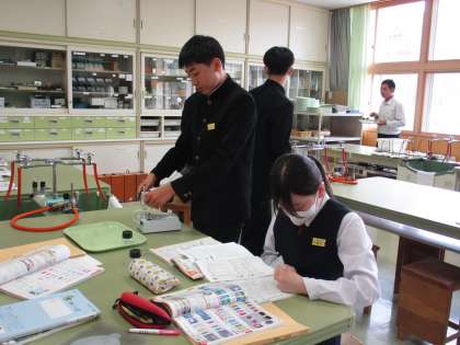 3年生は、理科で「酸とアルカリを混ぜ合わせたときの変化」という内容の授業でした。