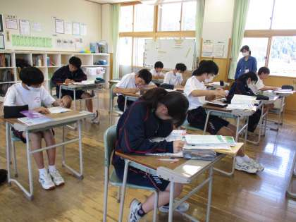 5限の授業の様子 公開日 2023/05/24 更新日 2023/05/24 日々の活動から 1年生は、楡の木タイムで今後の取り組みについて話し合っていました。 2年生は、理科で中間考査に向けて真剣に取り組んでいました。 3年生は、保健体育でソフトボールのミニゲームをしていました。