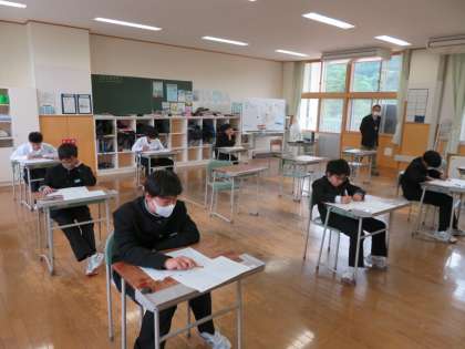 1限の授業の様子 公開日 2023/05/25 更新日 2023/05/25 日々の活動から 5月25日(木) 1年生は、英語の中間考査でした。 2年生は、国語の中間考査でした。 3年生は、数学の中間考査でした。
