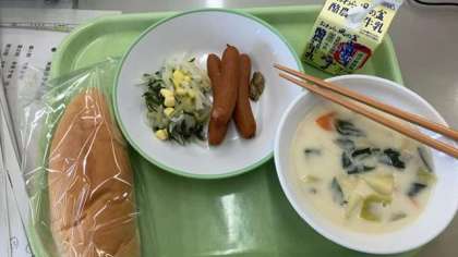 給食の様子と給食メニュー 公開日 2023/05/29 更新日 2023/05/29 日々の活動から 給食の様子です。 放送当番の様子です。 給食メニューです。 コッペパン 牛乳 あらびきウインナー 水菜のサラダ クリーム煮