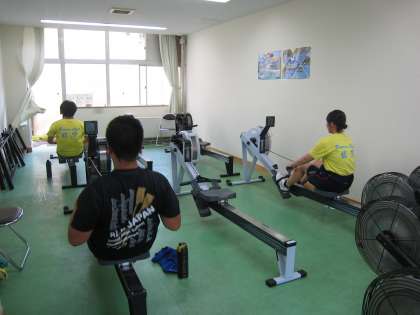今日のボート部は2グループに分かれて、エルゴやサーキットトレーニングを行っていました。台風が近いからか天候が変わりやすいです。それぞれ体調に十分注意して活動していきましょう。