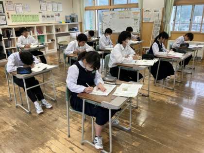 2年生は、国語で「クマゼミ増加の原因を探る」という授業でした。