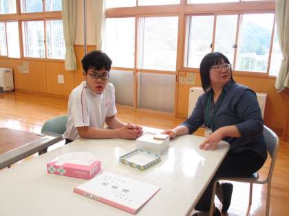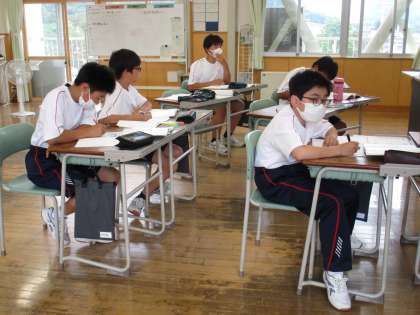 1年生は、数学でこれまでの復習をしていました。写真の活動後にタブレットを使った復習の方法も学びました。