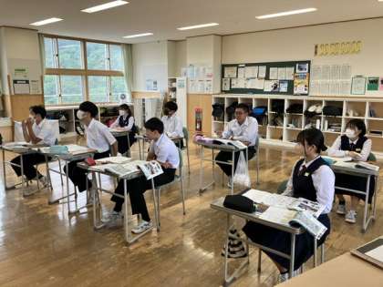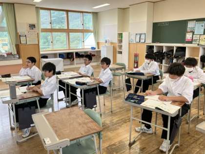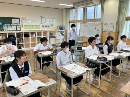 1時間目の授業の様子 公開日 2023/06/09 更新日 2023/06/09 日々の活動から 1年生は、英語で「会話を通していつやどこを質問したり、答えたりできるようになろう」でした。 2年生は、数学で「連立方程式の割合の問題を解けるようになろう」でした。 3年生は、公民で「対立と合意」でした。