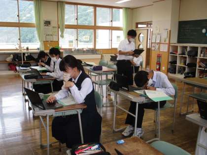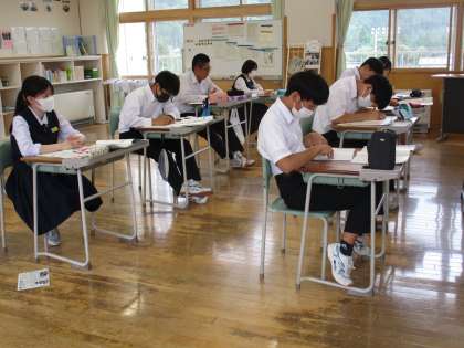 3時間目の授業の様子 公開日 2023/06/09 更新日 2023/06/09 日々の活動から 1年生は、数学で「文字を使った式の表し方」でした。 2年生は、楡の木タイムで「社会に学ぶ『14歳の挑戦』」の事前訪問についての準備をしていました。 3年生は、英語で「俳句について書かれた本の内容を整理しよう」という内容の授業でした。