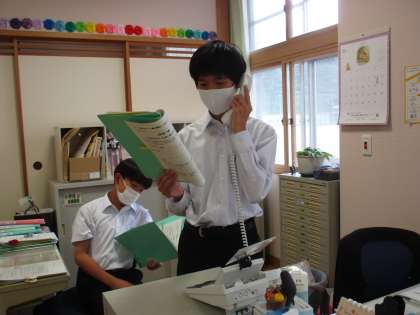 2年生は、楡の木タイムで「社会に学ぶ『14歳の挑戦』」の事前訪問のアポイントを取る電話をしていました。