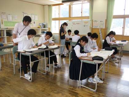 2年生は、英語で「ていねいにお願いしたり、申し出たりできるようになろう」という内容の授業でした。
