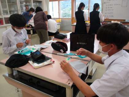 3時間目の授業の様子 公開日 2023/06/14 更新日 2023/06/14 日々の活動から 1年生は、技術で「知的財産権、著作権」という内容の授業でした。 2年生は、家庭科で「手縫いの基礎」という内容の授業でした。 3年生は、社会で「立憲主義」という内容の授業でした。