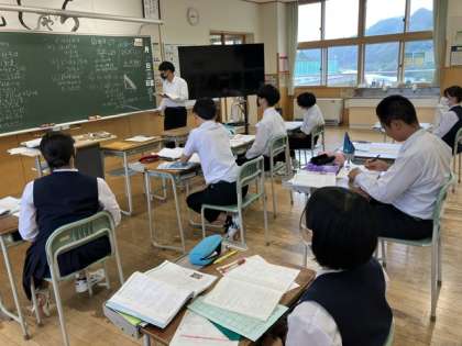 2時間目の授業の様子 公開日 2023/06/23 更新日 2023/06/23 日々の活動から 1年生は、美術で「文字で楽しく伝える」でした。 2年生は、国語で「短歌に親しむ」でした。 3年生は、数学で2次方程式の復習をしていました。