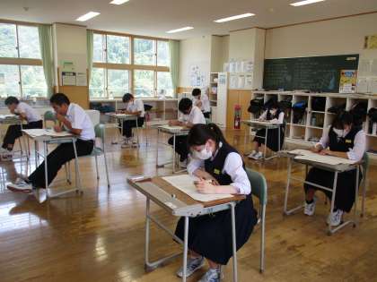 2年生は、数学の期末考査に取り組んでいました。