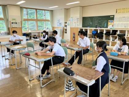 3時間目の授業の様子 2 公開日 2023/06/30 更新日 2023/06/30 日々の活動から 2年生は、来週から始まる社会に学ぶ14歳の挑戦の確認をしていました。 3年生は、楡の木タイムで体育大会で行う新種目について話し合っていました。