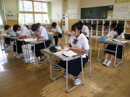 5時間目の授業の様子 公開日 2023/07/03 更新日 2023/07/03 日々の活動から 1年生と碧空級は、学級活動でハートフル集会の準備をしていました。 3年生は、数学でXの2乗に比例する関数について学んでいました。
