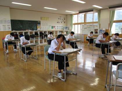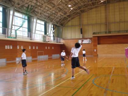 1年生は、保健体育でバドミントンの練習をしていました。 3年生は、数学の確認テストでした。