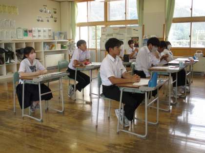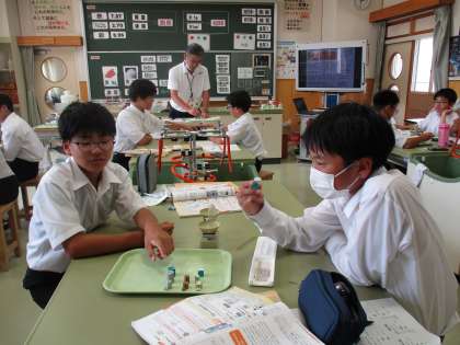 6時間目の授業の様子 公開日 2023/07/06 更新日 2023/07/06 日々の活動から 1年生は、理科で「さまざまな金属を見分けるにはどうしたらよいか」という内容の授業でした。 3年生は、英語でテストの見直しをしていました。