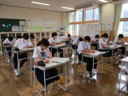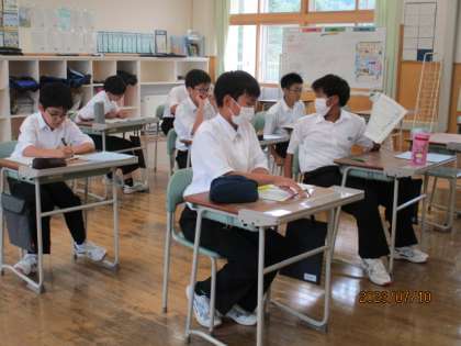 授業の様子 公開日 2023/07/10 更新日 2023/07/10 日々の活動から 7月10日(月) 1枚目 2年生は3限と5限に「社会に学ぶ『14歳の挑戦』」でお世話になった事業所へお礼状を書いていました。 2枚目 碧空級は3限が国語で習字をしていました。 3枚目 1年生は5限が学活で夏休みの日程について確認していました。