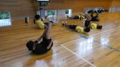 今日のボート部は大雨のため、体育館で筋力トレーニングをしていました。
