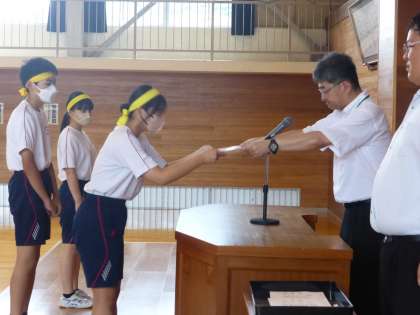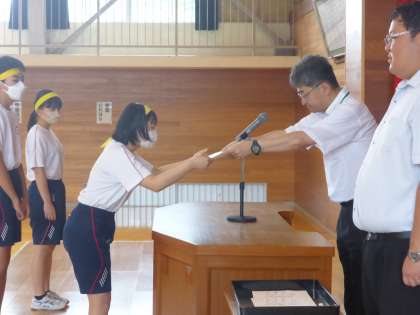 前半は、体育大会 任命式、委嘱状授与、役員紹介、結団式を行いました。