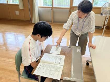 3時間目の授業の様子 1 公開日 2023/07/14 更新日 2023/07/14 日々の活動から 1年生は、国語でスピーチをしていました。 碧空級は、自立活動で、夏休み中の生活についてのお話を聞いていました。